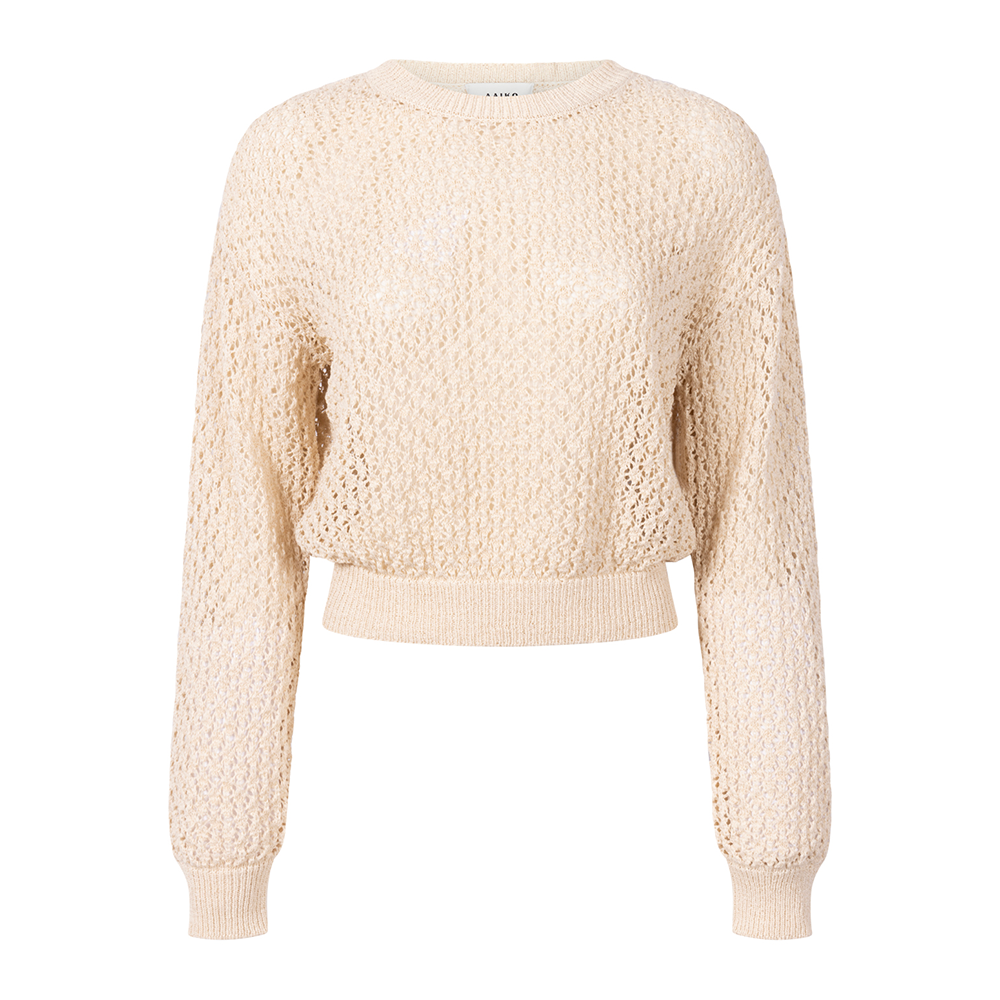 De Aaiko Jaylee CO 460 in off white is een stijlvolle en comfortabele trui van 60% polyester en 40% katoen. Het ontwerp is minimalistisch met een zachte, maar moderne uitstraling, wat het een veelzijdige toevoeging maakt voor je garderobe. Door de gaten in de trui is hij luchtig en lekker voor de zomer. Mocht je hem willen dragen naar kantoor, is het verstandig om er een top onder te dragen.