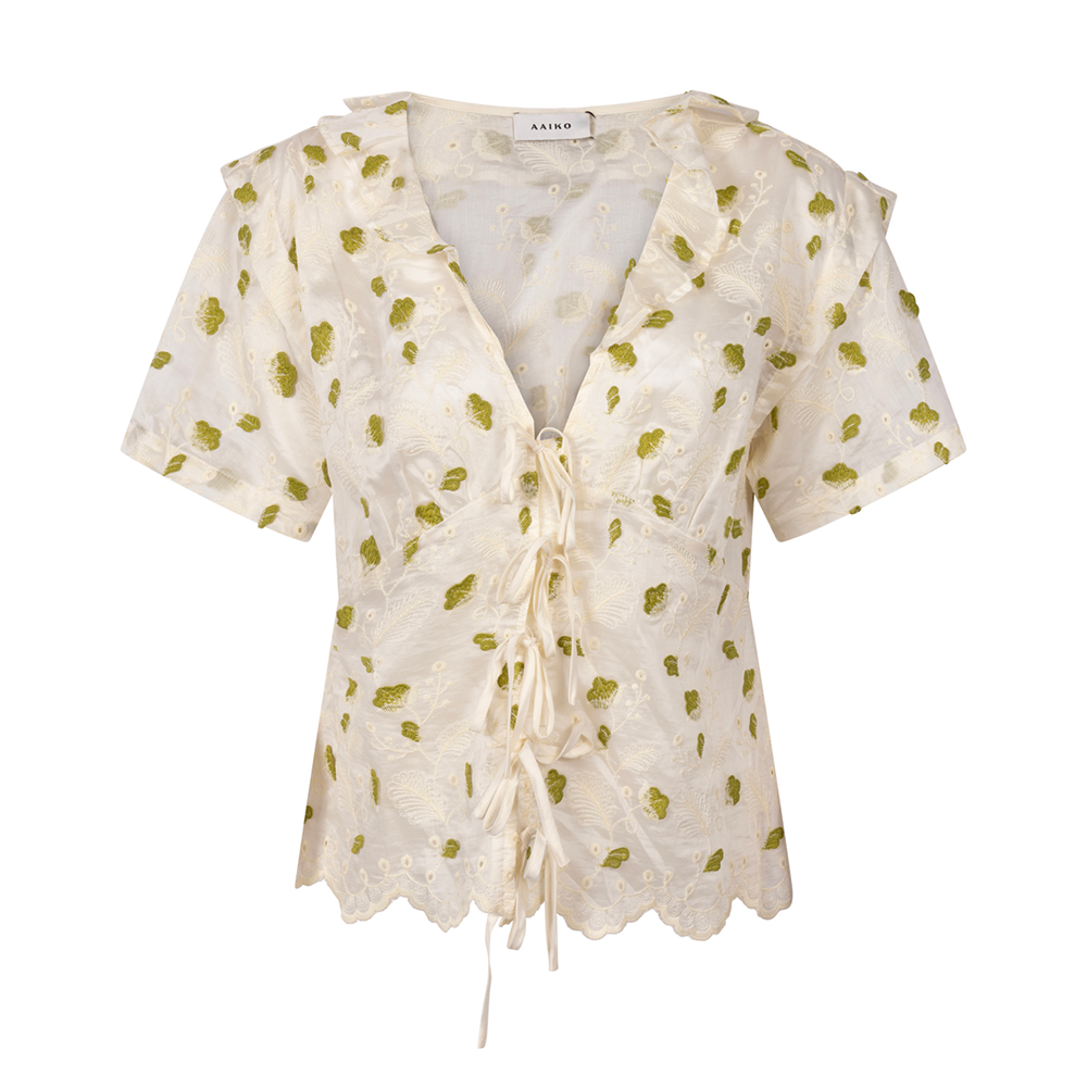 De Aaiko Julyn-Ten top in off-white is de perfecte combinatie van elegantie en comfort. Gemaakt van een lichte, soepelvallende stof, biedt deze top een luxe uitstraling en een heerlijk draaggevoel. De subtiele textuur en de verfijnde afwerking zorgen voor een stijlvolle en tijdloze look.