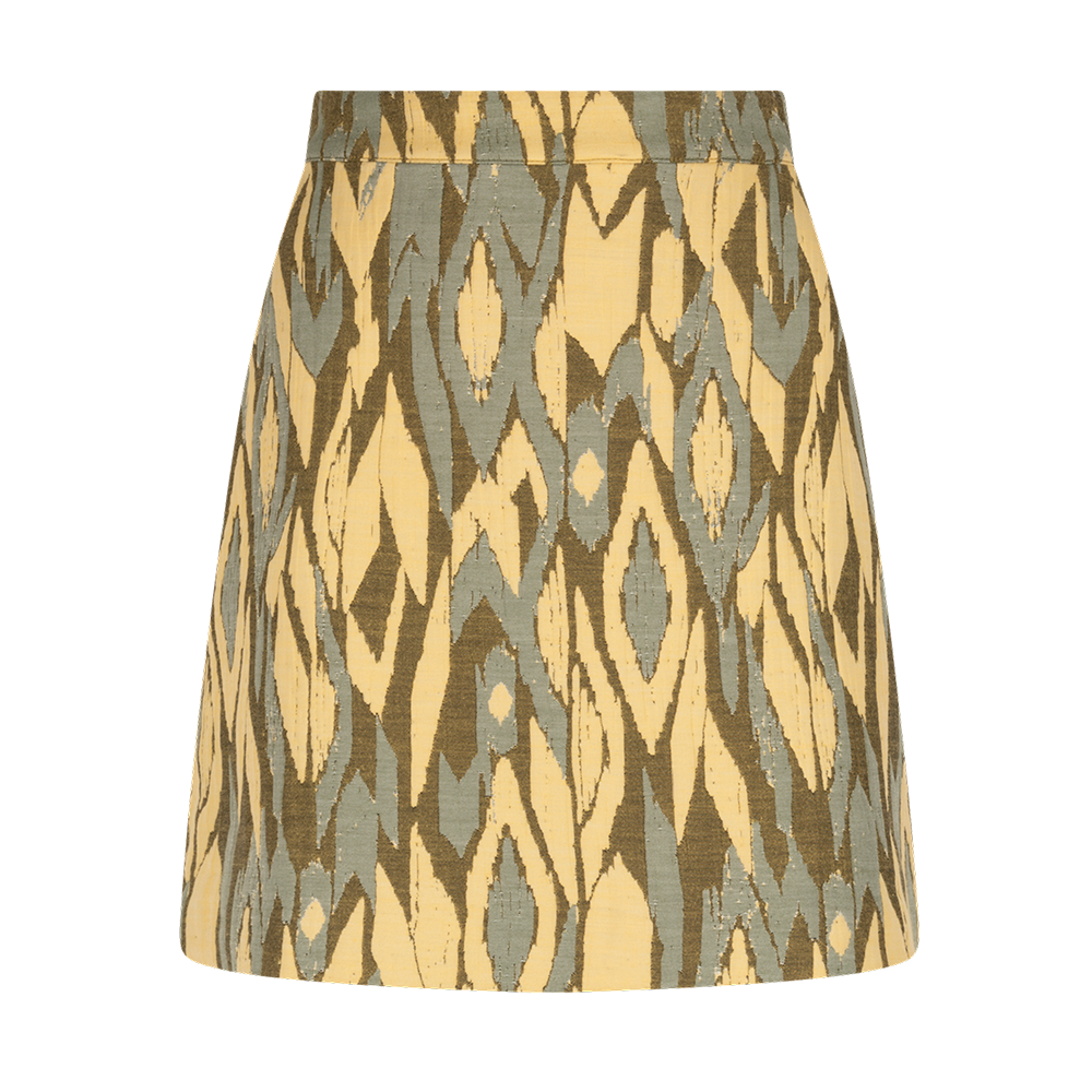 Echt een beauty, het kleurrijke Nasma rokje, Dit leuke model heeft de iconische Ikat print waar we bij Aaiko bekend om staan, perfect voor het bloeiseizoen, De rok loopt licht uit in een A-lijn en sluit hoog in de taille, Style de look met een lichtgewicht blouse en eventueel het matching Melissa gilet,