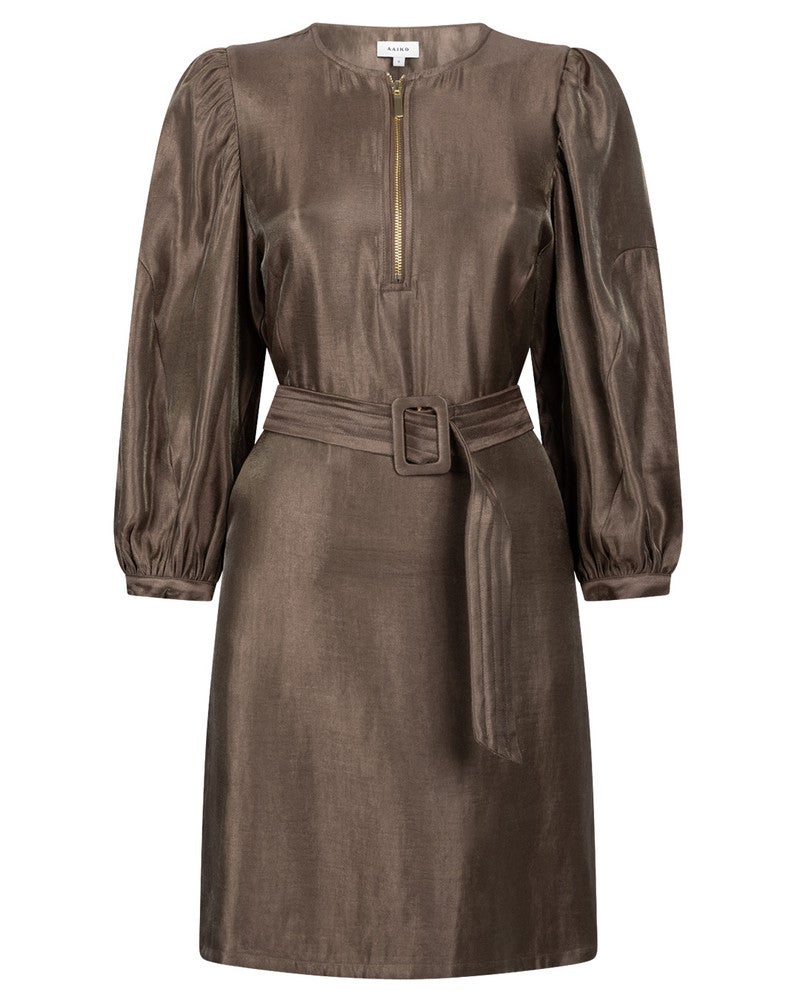 De Semira Shine Dress van Aaiko in de warme Pinecone kleur is een stijlvolle en veelzijdige jurk voor iedere gelegenheid. De lange pofmouwen en ronde halslijn zorgen voor een verfijnde uitstraling, terwijl de subtiele rits bij de hals een modern accent toevoegt. Dankzij de ceintuur riem kun je de taille extra benadrukken, waardoor je silhouet mooi wordt geaccentueerd.