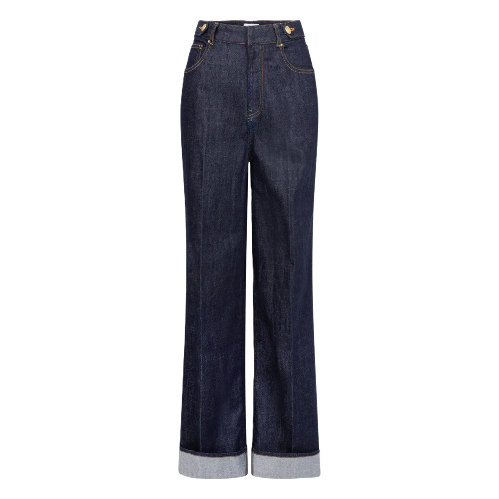De Vera Co Jeans van Aaiko in donkerblauw is een stijlvolle en moderne flared jeans die comfort en elegantie perfect combineert. De hoge taille en omgeslagen pijpen geven de broek een flatterend silhouet, terwijl de goudkleurige knopen een subtiel, maar opvallend detail toevoegen. Deze jeans is ideaal voor vrouwen die klassieke denim willen combineren met een trendy touch.