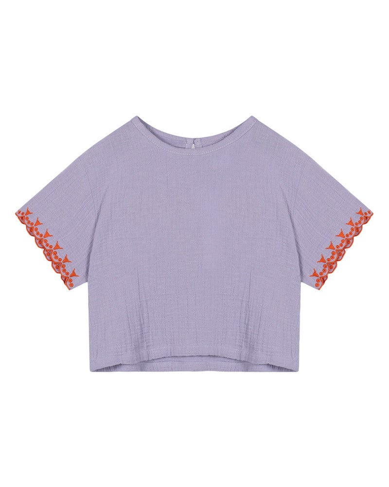 Alix Minikids woven embroidered sleeves top Paars