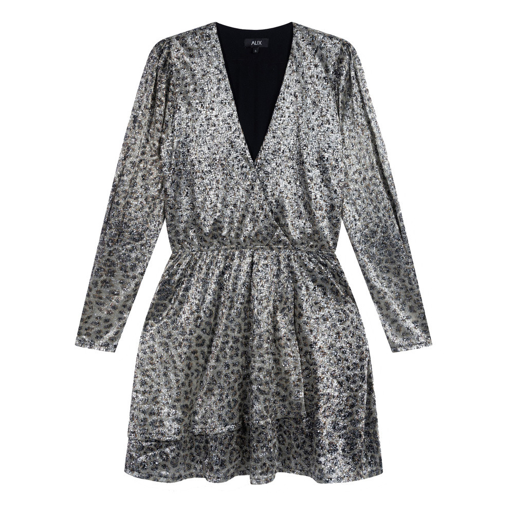 Alix The LabelLadies knitted leopard shiny wrap dress Multi KL