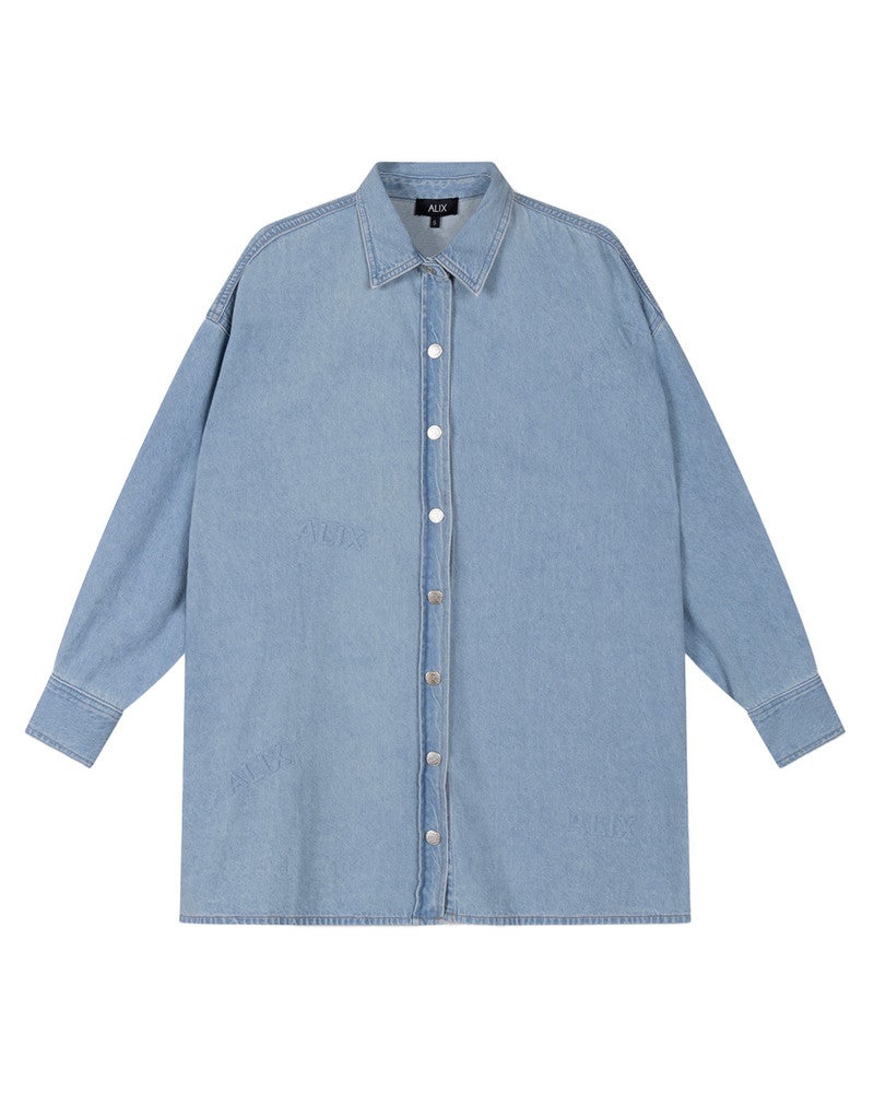 De Alix The Label woven Alix denim blouse is een moderne en opvallende dames blouse die direct een stoere en trendy uitstraling geeft. Het losse silhouet in combinatie met de soepel vallende denim stof zorgt voor een relaxte, eigentijdse look die zowel comfortabel als stijlvol is. Deze Alix The Label blouse heeft een nonchalante pasvorm die mooi valt en makkelijk te dragen is op verschillende manieren. De subtiele embossed “ALIX” details over de stof geven het item een unieke en herkenbare signatuur, waardoor de dames blouse net dat beetje extra karakter krijgt. De klassieke kraag en knoopsluiting zorgen voor een tijdloze basis, terwijl de denim look het geheel een casual edge geeft. Deze Alix The Label blouse is ideaal om te dragen als statement piece of als co-ord met bijpassende items. Combineer hem met een jeans voor een stoere denim-on-denim look, draag hem als jurkje of draag hem open over een top voor een meer gelaagde, casual stijl.