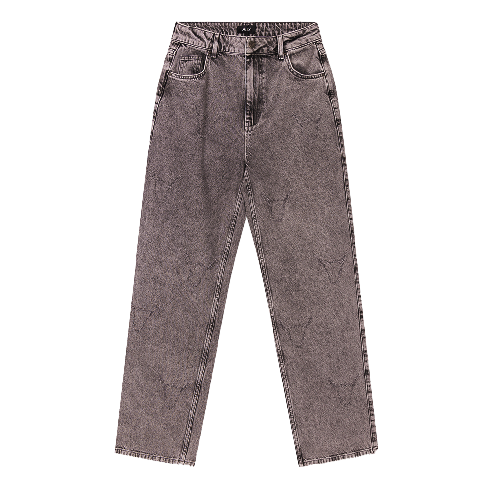 Ga voor een stoere, eigenzinnige look met deze grijsgewassen jeans van Alix The Label. De broek is gemaakt van een soepelvallende denimstof die comfortabel zit en moeiteloos met je meebeweegt. Het opvallende detail? De all-over damaged bull print die de jeans een ruige en unieke uitstraling geeft. Dankzij de relaxte pasvorm straalt deze jeans nonchalante coolness uit. Perfect te combineren met een bijpassend jasje de Damaged Bull Jacket voor een krachtige, statement look, maar ook heel tof met een basic top voor een meer casual vibe. Het model is 176cm en draagt een 36.