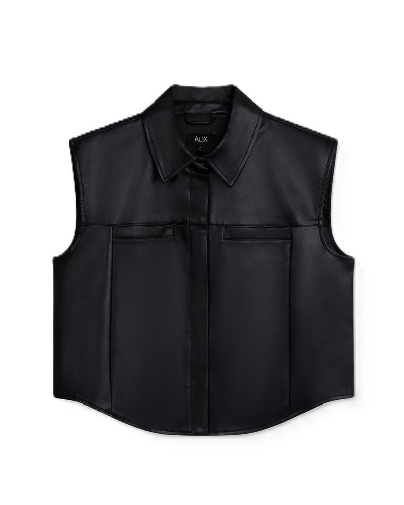 Alix The Labelladies woven faux leather waistcoat Zwart 1