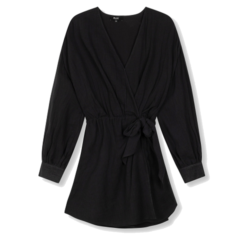 Alix The LabelLadies Woven Linen Look Wrap Dress Zwart