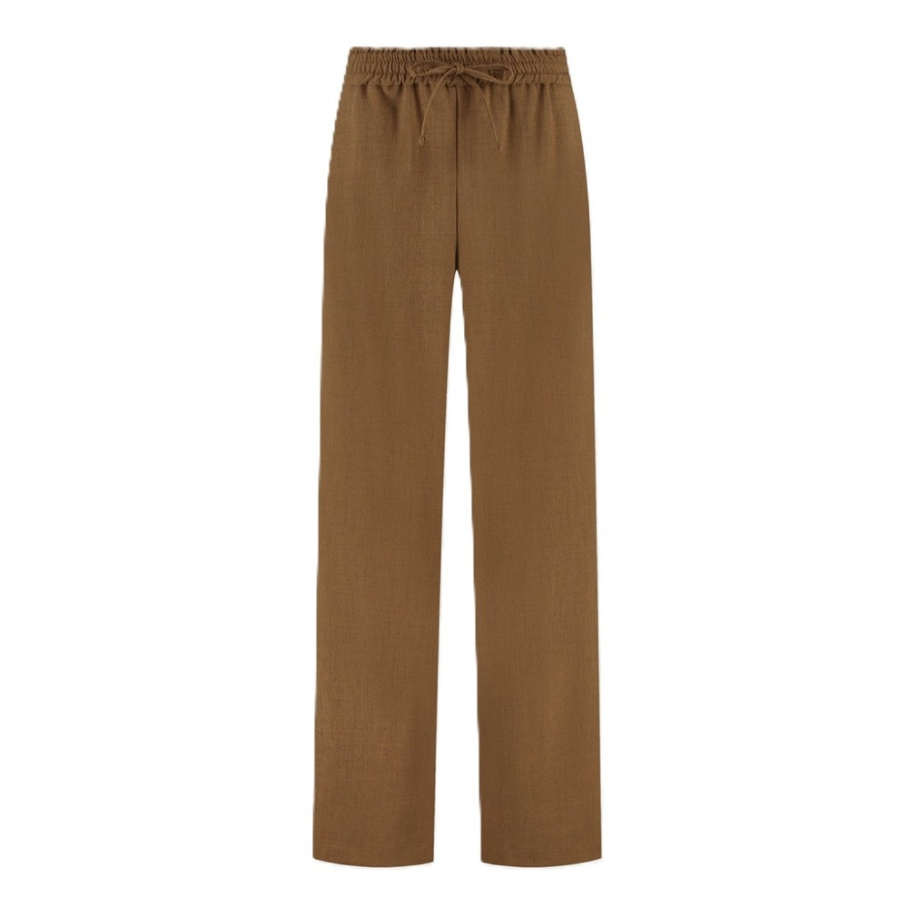 De broek heeft een rechte pasvorm met iets wijder uitlopende pijpen, wat zorgt voor een moderne en relaxte uitstraling. De rijke bruine kleur maakt het een veelzijdig item dat gemakkelijk te combineren is met verschillende tops en accessoires. Of je nu kiest voor een casual look met een T-shirt of een chiquere uitstraling met een blouse, de Henny Broek past zich moeiteloos aan je stijl aan. Het model is 176cm en draagt een 36.