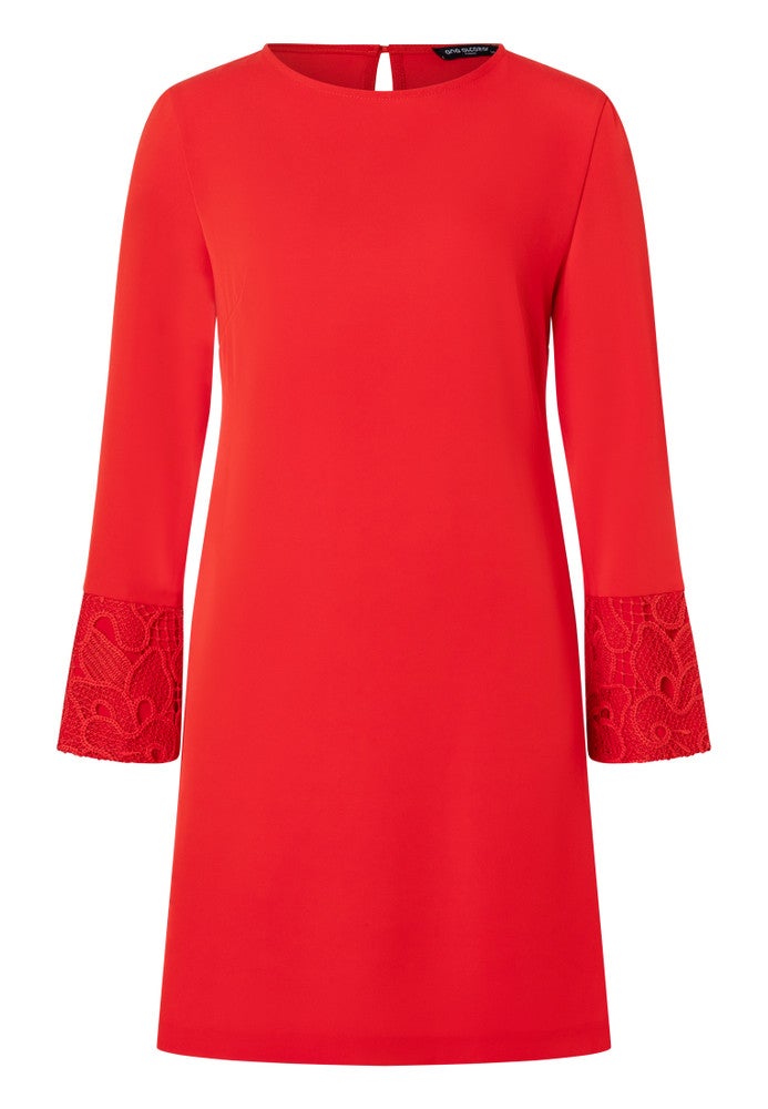 De Ana Alcazar Mix Dress 3634 in rood is een elegante jurk die perfect is voor een chique gelegenheid. Het ontwerp met een mix van materialen biedt een luxe uitstraling en een comfortabele pasvorm. De rijke rode kleur en het verfijnde silhouet maken deze jurk een tijdloze keuze voor zowel formele als semi-formele gelegenheden. Het model is 176cm lang en draagt maat 36