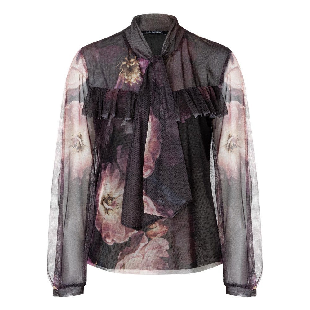 De Stropdas Blouse Azina van Ana Alcazar is een verfijnde blouse die moeiteloos de balans vindt tussen elegantie en speelse flair. Met een tijdloze bloemenprint in warme tinten, is deze blouse een statement op zich. De ruches langs de schouders en de striksluiting bij de halslijn voegen een romantisch accent toe aan het geheel. Het model is 177cm en draagt een 36.