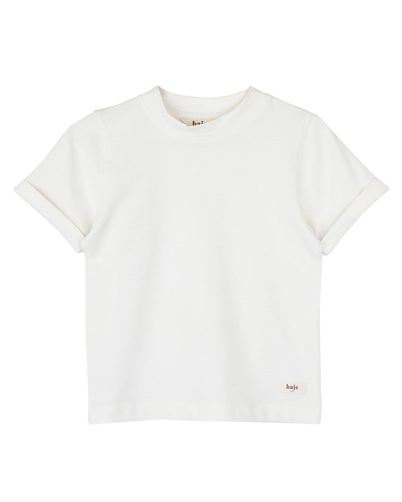 Het Baje Studio Moss T‑shirt voor jongens is een klassiek en veelzijdig shirt dat een moderne en casual uitstraling geeft aan iedere outfit. Dit shirt van Baje Studio heeft een tijdloos design waardoor het zich eenvoudig laat combineren met jeans, shorts of cargo pants voor diverse looks. De comfortabele pasvorm draagt prettig en maakt het T‑shirt ideaal voor schooldagen, speelafspraken of een ontspannen dagje uit. Dit Baje Studio T-shirt is leuk te combineren met een jeans. Met het Baje Studio Moss T‑shirt voeg je een modieus en makkelijk te stylen item toe aan de garderobe van een jongen.
