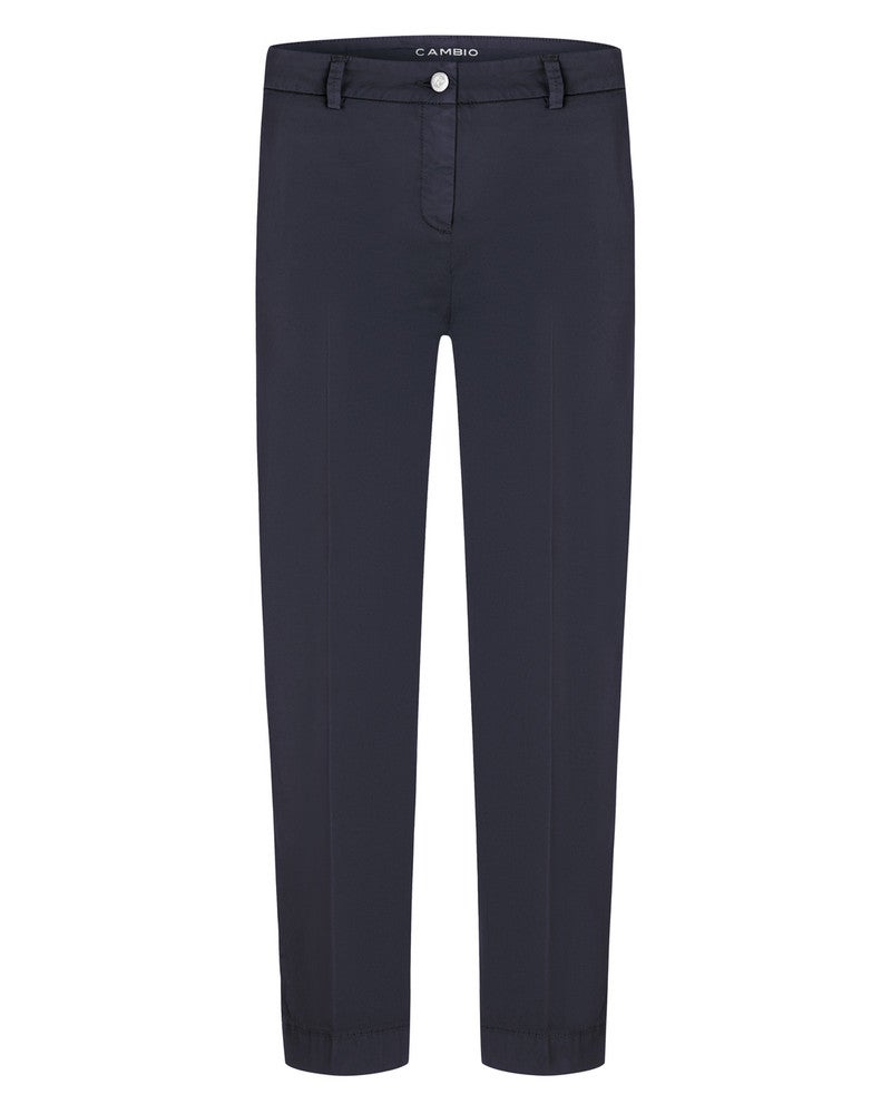 Cambio Dames Karina Chino is een elegante en veelzijdige donkerblauwe broek van het hoogwaardige merk Cambio. Deze chino‑stijl broek valt op door de diepe blauw‑navy tint die een tijdloze en stijlvolle uitstraling geeft, perfect voor zowel zakelijke looks als casual chic outfits. Deze Cambio broek is leuk te combineren met een top en blazer voor een nette look en met een t-shirt of sweater voor een alledaagse look.