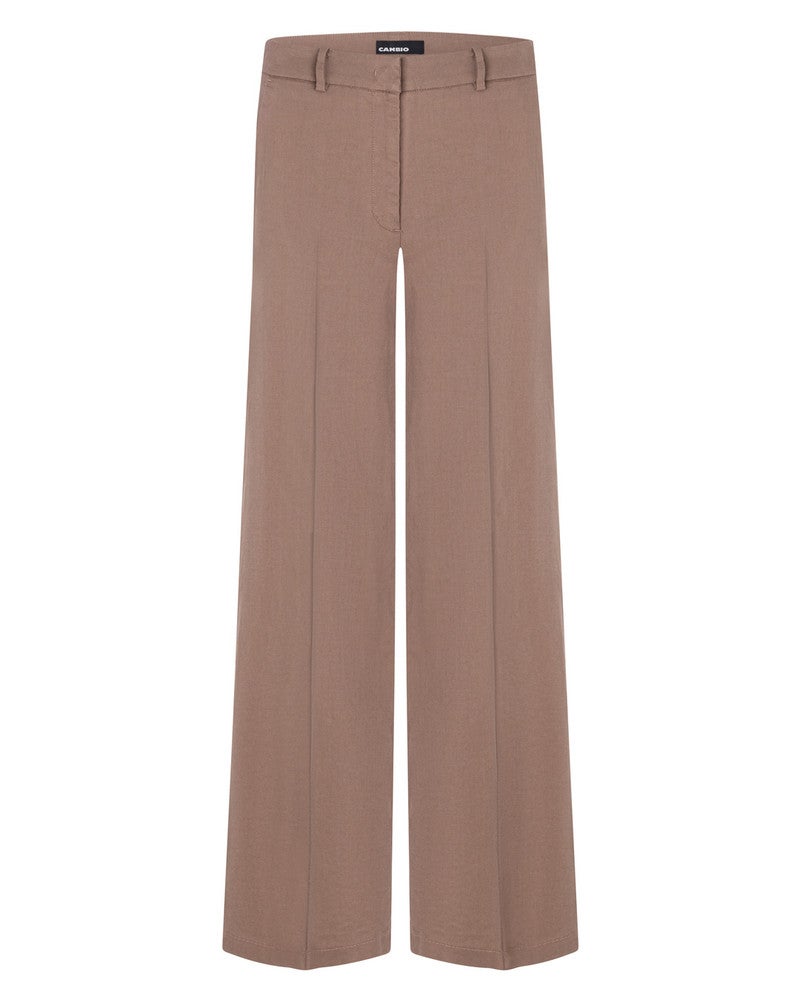 De Cambio Mira Wide Leg Pantalon is een elegante en tijdloze broek voor dames die comfort en stijl perfect weet te combineren. Met zijn klassieke wide leg pasvorm valt deze pantalon soepel en flatterend, waardoor je silhouet wordt verlengd en je look direct een verzorgde uitstraling krijgt. De Cambio Mira Wide Leg Pantalon is veelzijdig te combineren; draag hem met een blouse en blazer voor een chique, zakelijke outfit of kies voor een casual top en sneakers voor een stijlvolle, ontspannen look. Dankzij het eenvoudige maar verfijnde design vormt deze pantalon een sterke basis voor uiteenlopende outfits. Of je nu naar kantoor gaat, een diner hebt of een dagje in de stad plant, deze wide leg broek geeft je look een moderne en elegante touch zonder in te leveren op draagcomfort. Met deze pantalon van Cambio voeg je een klassiek en veelzijdig item toe aan je garderobe.