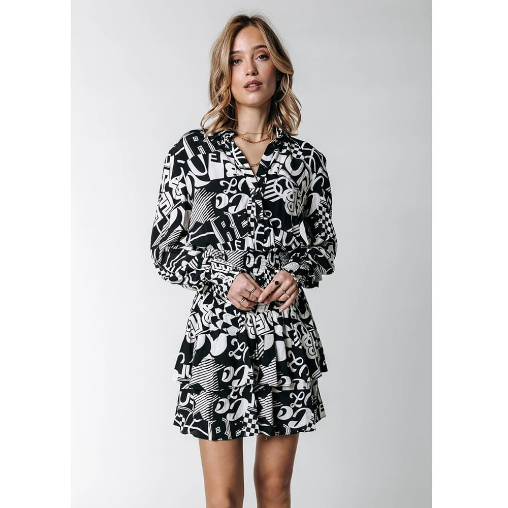Colourful RebelKina Letter Ruffle Mini Dress Zwart KL