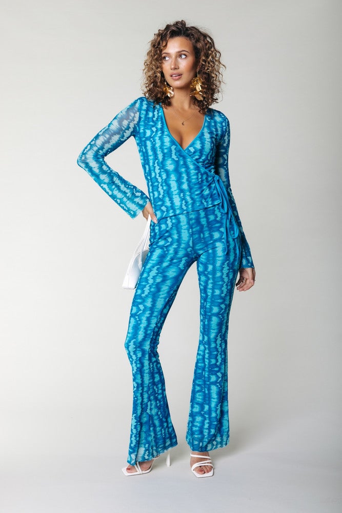 Colourful RebelTie Dye Mesh Extra Flare Pants Blauw KL