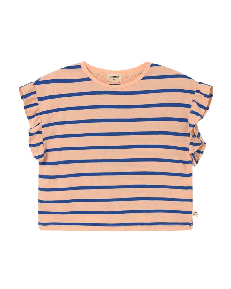Dit gestreepte T-shirt van Cozmo is gemaakt 100% organic cotton en draagt heerlijk comfortabel. Het T-shirt heeft korte mouwen die zijn afgewerkt met speelse ruches.