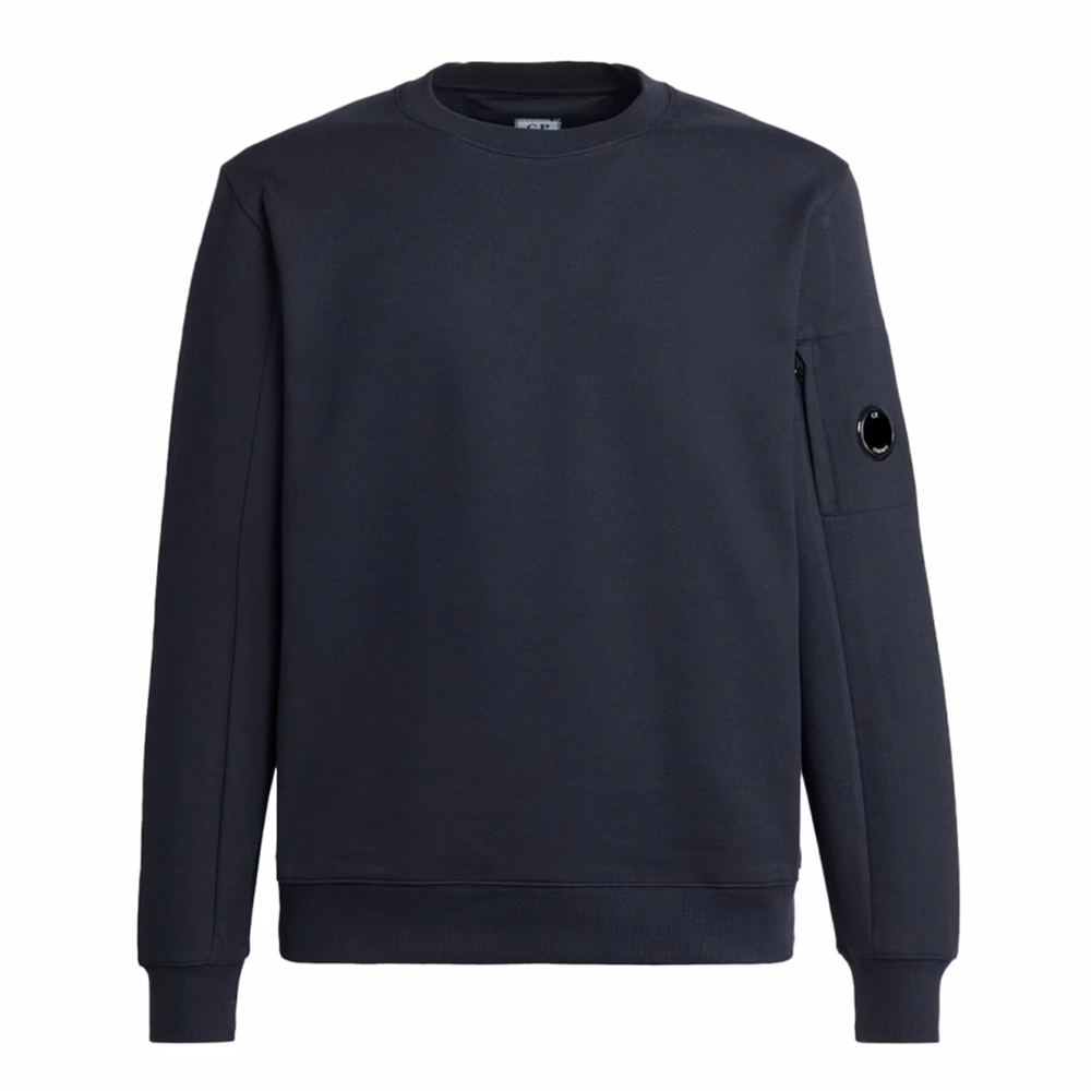 Stoere C.P. Company pocket lens sweater. De sweater heeft een ronde hals, elastische boorden aan de uiteinden en op de linkermouw de welbekende C.P. Company Lens.