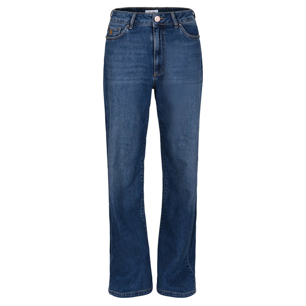 De DNM Pure Cooper jeans wide-leg 5-pocketbroek. De broek sluit met een knoop- en ritssluiting en heeft wijduitlopende pijpen. Verkrijgbaar in verschillende wassingen/kleuren.