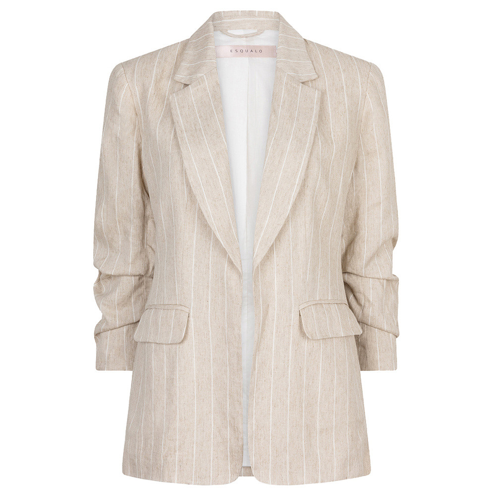 Draag de EsQualo linnen blazer op een linnenshirt en een high-waisted broek voor een elegante, zakelijke look of combineer hem met een casual T-shirt en jeans voor een trendy, alledaagse outfit.