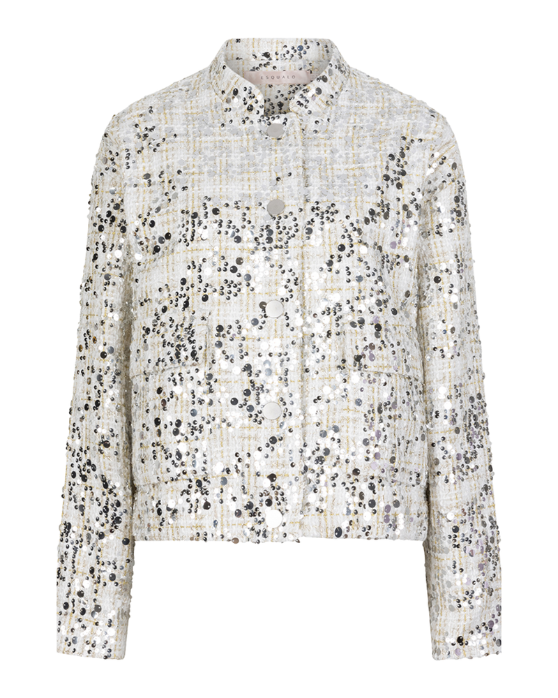 Maak je look compleet met het Esqualo Bomber Jacket Sequins, een stijlvolle jas die comfort en glamour moeiteloos combineert. Het opvallende sequin-detail op de voorkant geeft het jack een speelse, glanzende touch en maakt iedere outfit direct bijzonder. Met de klassieke bomberpasvorm, een ritssluiting en elastische boorden bij de mouwen en taille, heeft deze Esqualo jacket een moderne en veelzijdige uitstraling. Draag het jack over een casual outfit voor een stoere, trendy look, of combineer het met een elegante jurk voor een verrassend chique effect. Deze Esqualo bomberjas is perfect voor vrouwen die houden van een combinatie van comfort, stijl en een subtiele glamour. Voeg dit veelzijdige jack toe aan je collectie en laat je look stralen bij elke gelegenheid.
