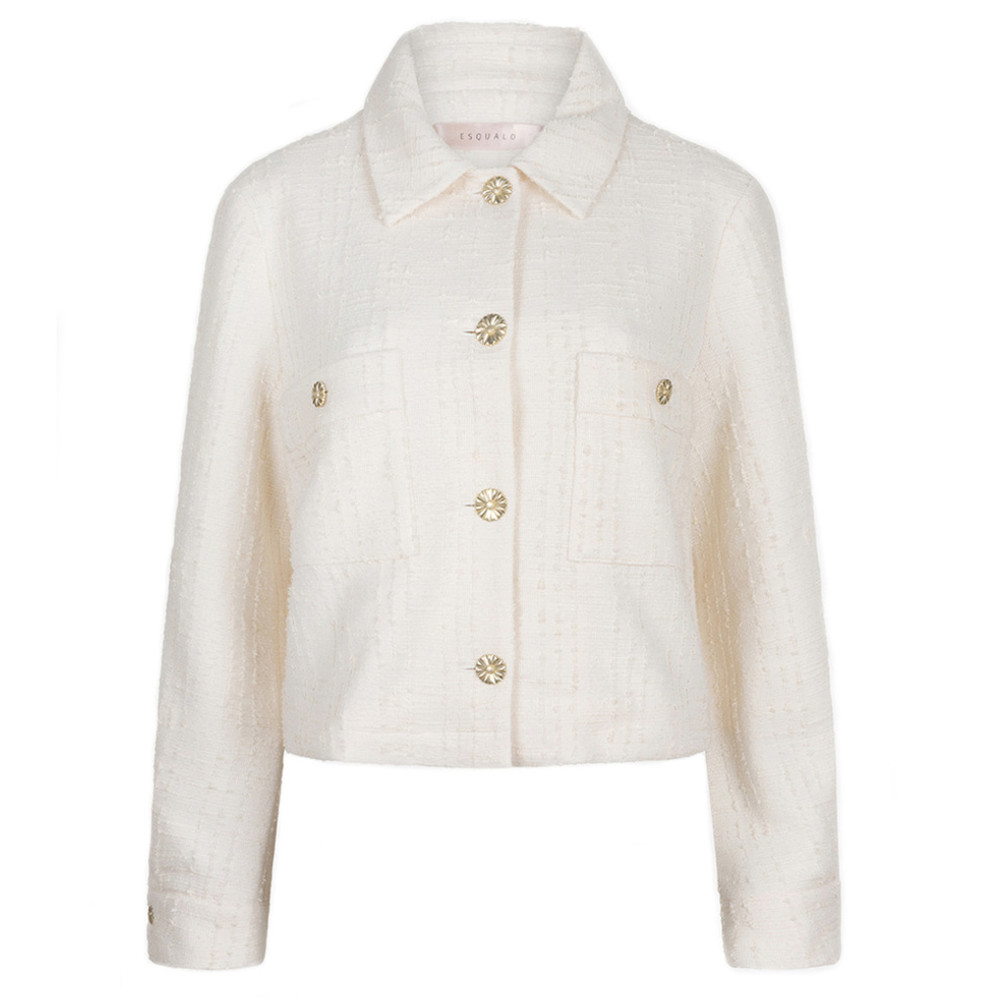 Geef je outfit een chique en elegante uitstraling met het EsQualo Jacket Stretchy Boucle. Dit jasje is gemaakt van stretchy bouclé stof, wat zorgt voor een comfortabele, lichte pasvorm en een luxe uitstraling. De tijdloze bouclé textuur voegt een verfijnde touch toe aan je look, terwijl het jasje veelzijdig genoeg is om zowel casual als meer geklede outfits af te maken.