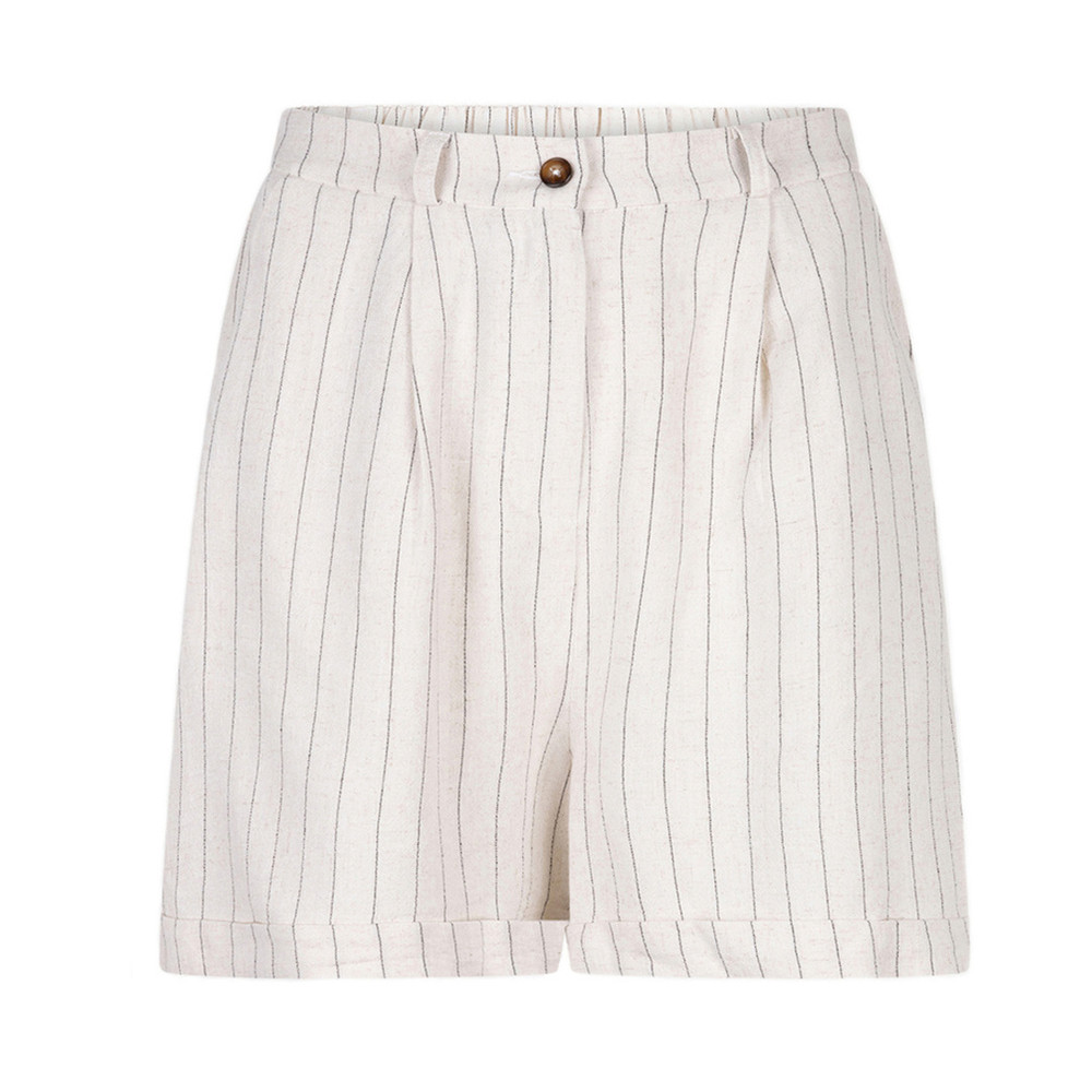 De Esqualo Shorts Linen Stripe in zand zijn een stijlvolle en luchtige must-have voor de zomerse garderobe. Deze elegante dames short is gemaakt van een comfortabele linnenmix, wat zorgt voor een ademende en natuurlijke feel – perfect voor warme dagen. Het verfijnde streeppatroon in zandkleurige tinten geeft de short een chique en tijdloze uitstraling. Dankzij de elastische tailleband met striksluiting sluit hij mooi aan en zit hij heerlijk. Combineer de Esqualo linnen short met de bijpassende blazer of een losvallende blouse voor een trendy zomerlook. Ideaal voor een dag op het terras, een citytrip of een stijlvolle wandeling aan het strand. Het model is 173cm en draagt een 36.