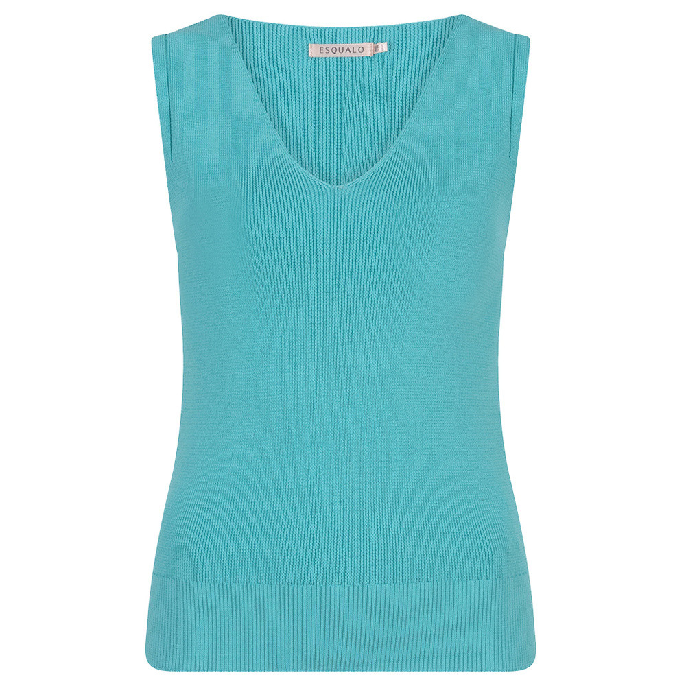 De EsQualo Top Rib V-neck Sleeveless in blauw is een stijlvolle en veelzijdige basis voor je zomergarderobe. Deze mouwloze top is gemaakt van een zachte ribstof die prettig aanvoelt en zorgt voor een comfortabele pasvorm. De mooie V-hals geeft de top een vrouwelijke uitstraling en maakt het makkelijk om te combineren met diverse outfits. Of je hem nu draagt onder een blazer voor een nette look of casual met een jeans, deze top blijft altijd chique en draagbaar. Het model is 173cm en draagt een 36.