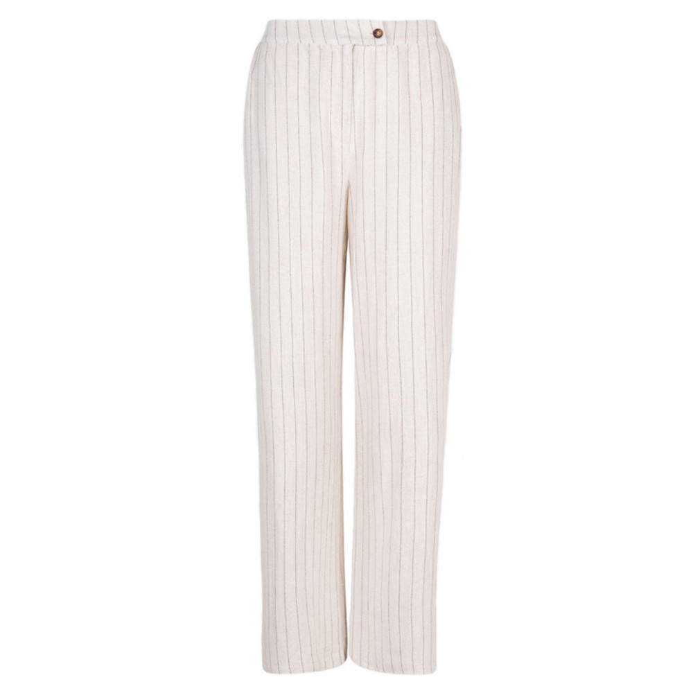 De EsQualo Trousers Linen Stripe is de perfecte zomerbroek voor dames die stijl en comfort willen combineren. Gemaakt van een luchtige linnenmix, zorgt deze broek voor een heerlijk ademend gevoel, ideaal voor warme dagen. Het subtiele streepjespatroon geeft de broek een tijdloze en elegante uitstraling, die eenvoudig te combineren is met zowel casual als chique outfits. Dankzij de rechte pasvorm en de elastische tailleband biedt deze broek niet alleen een modieuze look, maar ook extra draagcomfort. Draag hem naar kantoor, een dagje uit of een zomerse borrel. Ontdek jouw nieuwe favoriete broek met de EsQualo Trousers Linen Stripe! Het model is 173cm en draagt een 36.