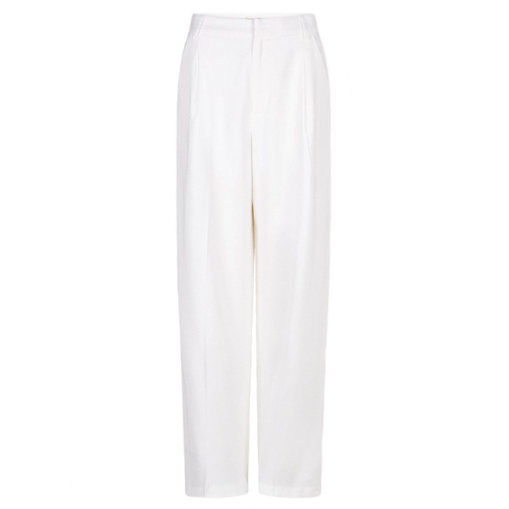 Op zoek naar een stijlvolle broek die je zowel chic als casual kunt dragen? Dan is de Esqualo Trousers WB Pleat HS25 een echte aanwinst. Deze elegante broek heeft een rechte pijp en een subtiele plooi aan de voorkant, wat zorgt voor een flatterend en vrouwelijk silhouet. De zachte stof voelt comfortabel aan en valt mooi soepel langs je benen. Dankzij de neutrale kleur en klassieke pasvorm combineer je deze broek moeiteloos met blouses, tops of knitwear. Draag 'm naar kantoor met hakken of ga juist voor een relaxte look met sneakers. Tijdloos, veelzijdig en perfect voor elk seizoen. Het model is 173cm en draagt een 36.