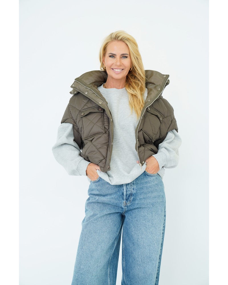 De EST'SEVEN Nara Cape in army green is een stijlvolle musthave voor iedere garderobe. Deze prachtige damescape combineert comfort met een moderne, tijdloze uitstraling en is perfect voor zowel casual als chique outfits. Gemaakt van hoogwaardige materialen biedt de Nara Cape een luxe gevoel en een elegante pasvorm die gemakkelijk te combineren is met een jeans. De armykleur geeft een stoere, veelzijdige touch en maakt de cape geschikt voor verschillende seizoenen. Dankzij het lichte gewicht en de open vorm draag je de cape comfortabel over meerdere lagen. Deze cape is een echte eyecatcher en voegt direct stijl toe aan elke look. Het model is 177cm lang en draagt maat 38.