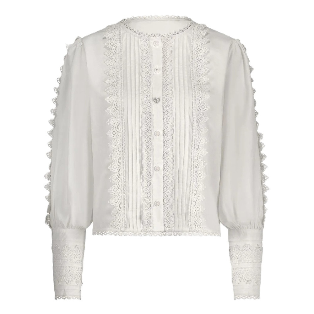 De Geneve Blouse van Fifth House in de kleur Star White is een elegante toevoeging aan je garderobe. Deze blouse is vervaardigd uit 100% katoen, wat zorgt voor een ademende en comfortabele pasvorm. Het ontwerp kenmerkt zich door verfijnde broderie details en ballonmouwen, die een romantische en vrouwelijke uitstraling geven. Met een normale pasvorm en een ronde halslijn is deze blouse veelzijdig en gemakkelijk te combineren met zowel casual als formele outfits. Of je nu een dag op kantoor hebt of een avondje uit plant, de Geneve Blouse biedt een stijlvolle en tijdloze look. Het model is 179 cm en draagt maat 36.