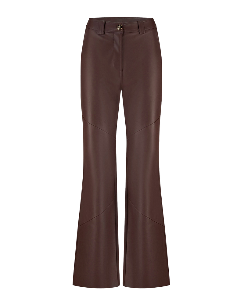 De Jessy flared pants van Fifth House zijn een stijlvolle en veelzijdige toevoeging aan je garderobe. Deze broek van imitatieleer heeft een middelhoog taille en een elegante flared pasvorm, wat zorgt voor een moderne en vrouwelijke look.