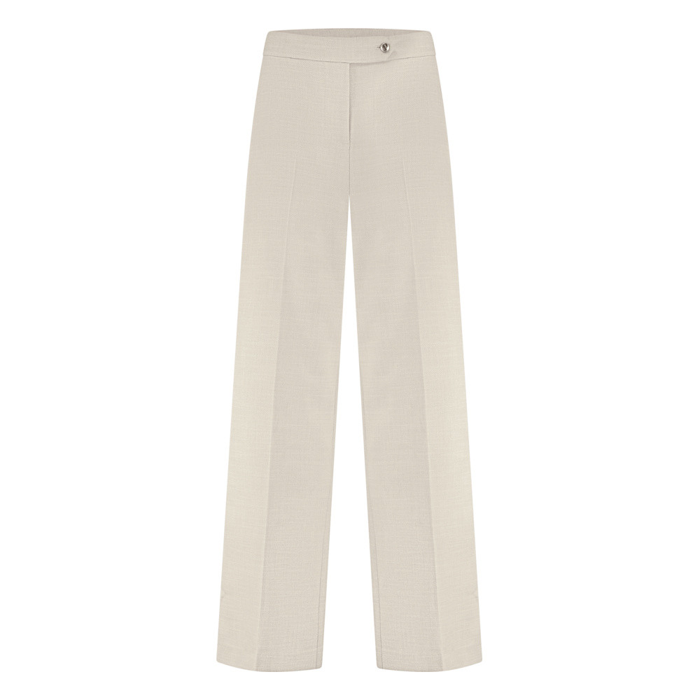 Aan de achterkant is de tailleband deels elastisch verwerkt, waardoor de broek mooi aansluit zonder in te leveren op draagcomfort. De ritssluiting en het effen design maken dit een veelzijdig item dat je moeiteloos kunt stylen met een blouse, knit of blazer, ideaal voor werk of een nette casual outfit. Met de FIFTH HOUSE Juliete Pants kies je voor een broek die stijl en comfort moeiteloos combineert. Draag de Juliette Pants met de bijpassende Juliete Blazer voor de complete look. Het model is 179cm en draagt een 36. De binnenbeenlengte is 84cm.
