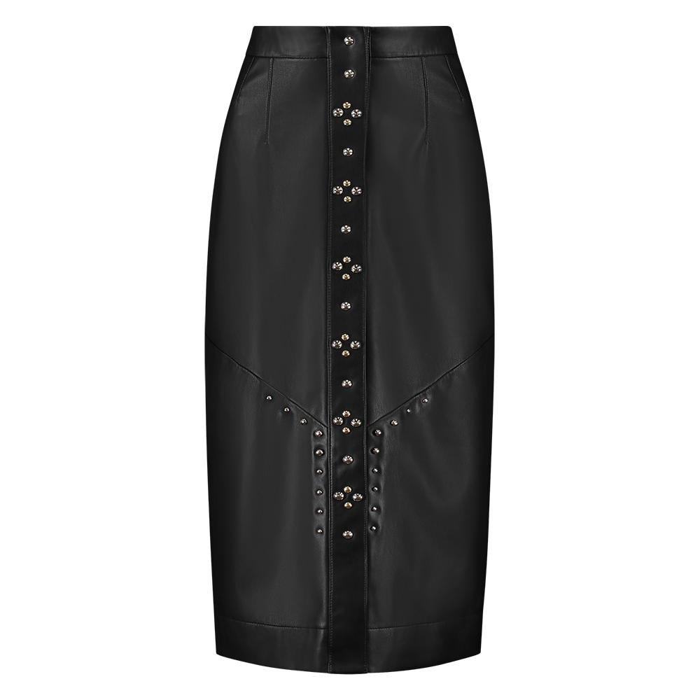 VEGAN LEREN MAXI ROK MET STUDS, Met de Maki Skirt kun je echt een statement maken!