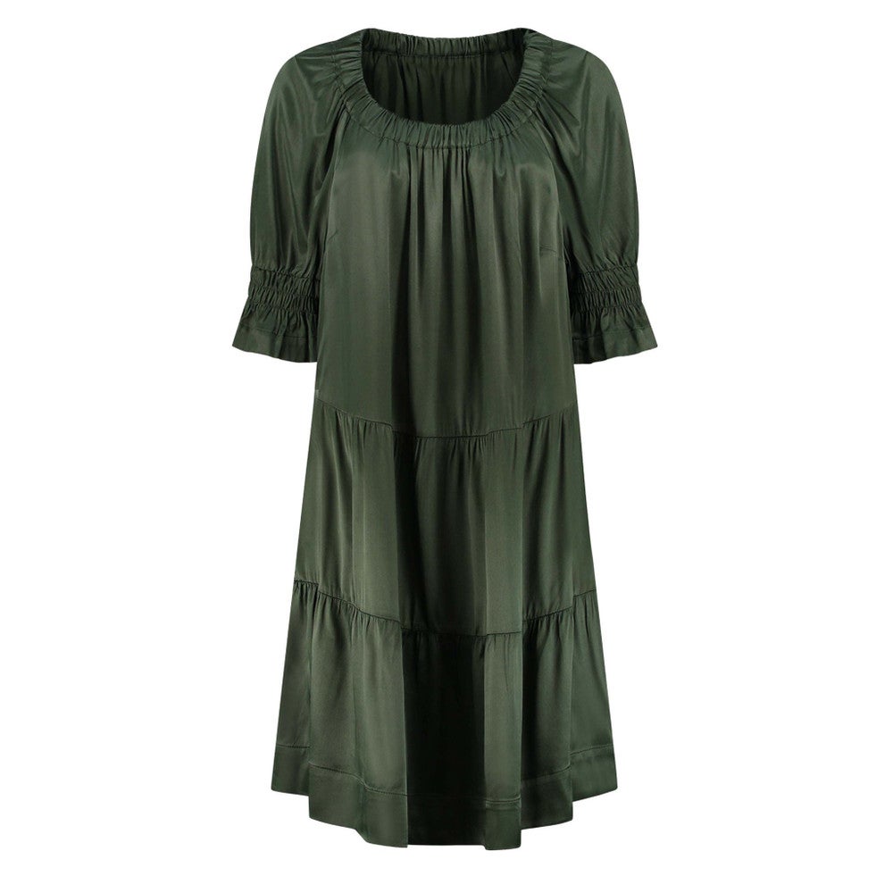 Verliefd op glanzende losvallende jurken? Dan is deze jurk voor jou gemaakt! Deze glanzende jurk is loose fit, heeft een ronde halslijn en driekwart mouwen, Je kunt de Rumi Short Dress dragen met een mooi paar laarzen of hakken,