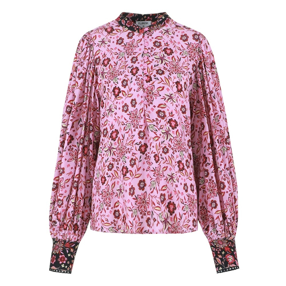 De Fluresk Faya blouse is een echte blikvanger die kracht en stijl uitstraalt. De opvallende bloemenprint wordt mooi in balans gebracht door de contrasterende zwarte details. Dankzij de hoge halslijn en de brede manchetten heeft de blouse een elegante uitstraling, terwijl de lichte stof zorgt voor een luchtig en comfortabel gevoel.