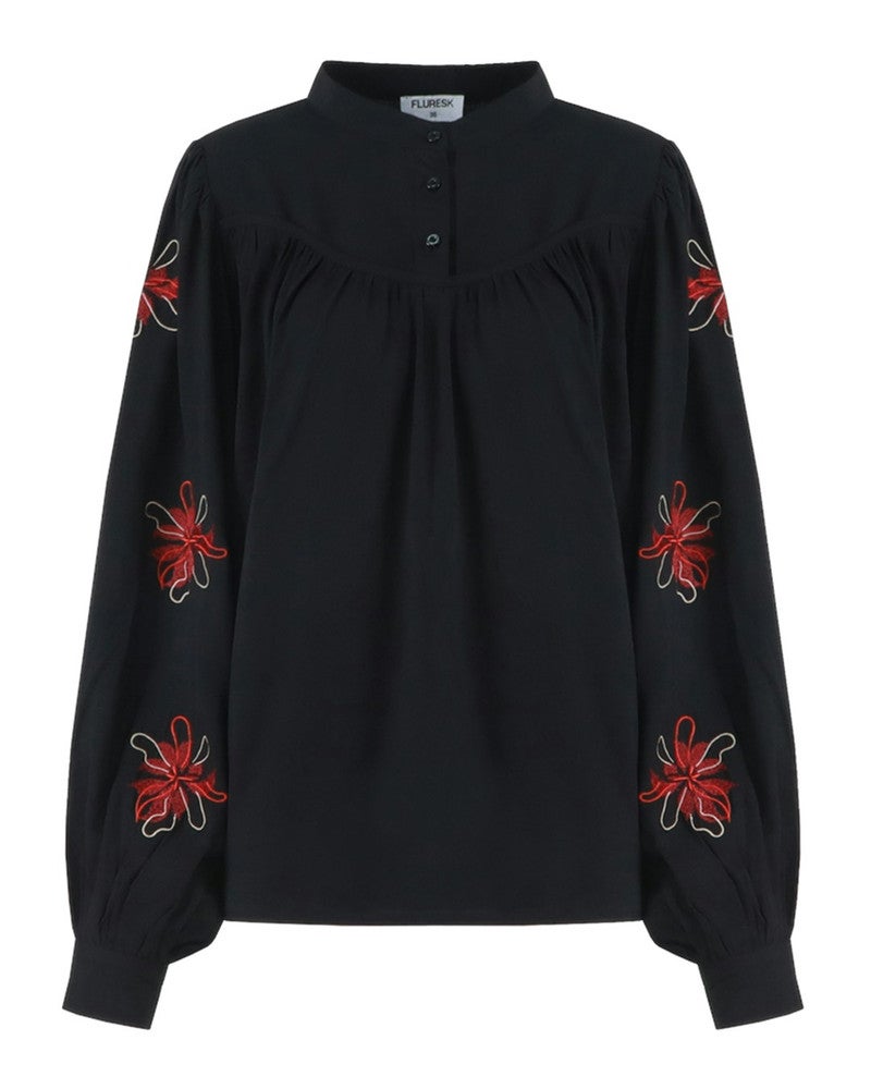 De Fluresk Kiera Blouse is een stijlvol kledingitem dat elegantie en draaggemak op natuurlijke wijze combineert. Deze blouse heeft een tijdloos ontwerp met een moderne twist, waarbij de geborduurde bloemen op de mouwen zorgen voor een verfijnd en vrouwelijk detail. De soepele, luchtige stof laat de blouse mooi vallen en zorgt ervoor dat ze prettig aanvoelt tijdens het dragen. Perfect voor verschillende momenten, of je nu kiest voor een nette outfit of een meer casual look. Combineer de Fluresk blouse met een pantalon voor een elegante uitstraling of met jeans voor een ontspannen stijl met klasse. De Kiera Blouse is een veelzijdige toevoeging aan je garderobe die elke outfit een stijlvolle touch geeft. Dit kledingitem van Fluresk valt op maat. We raden aan om je eigen maat te nemen.