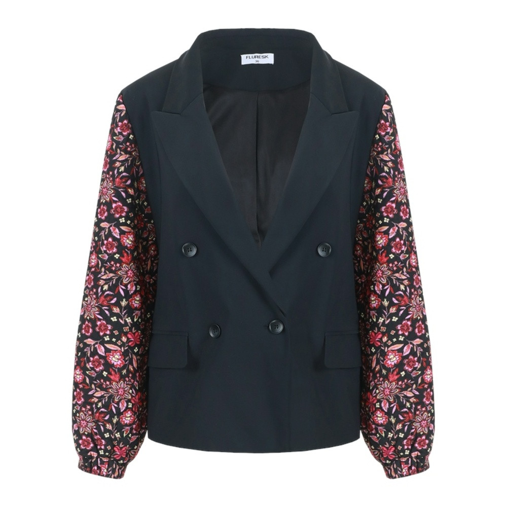 De Fluresk Myrha Blazer in de kleuren Black/Dusty Mauve is een opvallende en veelzijdige blazer die stijl en flair combineert. Het klassieke double-breasted ontwerp met zwarte body biedt een tijdloze uitstraling, terwijl de bloemige mouwen in Dusty Mauve een speelse en moderne twist geven. Deze blazer is ideaal voor zowel formele als casual gelegenheden, waarbij je een statement wilt maken.