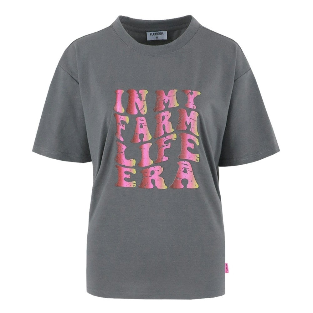 Het Fluresk Nerina t-shirt in grijs is zo’n item dat je elke dag wel aan wilt trekken. De zachte stof voelt fijn aan en de pasvorm zit precies goed: niet te strak, niet te los. De roze-geel graphic aan de voorkant geeft dit shirt net dat beetje extra, zonder dat het te druk wordt. De grijze kleur maakt dit t-shirt makkelijk te combineren met bijna alles in je kast. Draag dit kledingitem met je favoriete jeans voor een alledaagse look of met een denim rok voor een speelser effect. Voeg een jasje toe en je bent klaar om te gaan. Dit is zo’n t-shirt dat je keer op keer uit de kast pakt. Het model is 176cm lang en draagt een maat 36. We raden je aan om je eigen maat te nemen.