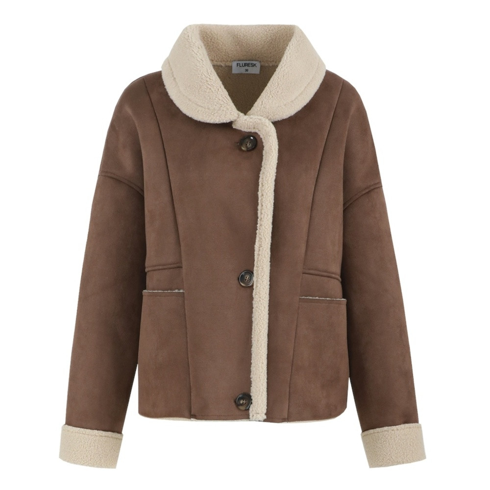 De Fluresk Taressa Jacket in Mocha Brown en Sand is de ideale keuze voor een warme en stijlvolle herfstlook. De buitenkant van zacht faux suède voelt luxe aan, terwijl de teddy voering zorgt voor extra comfort en warmte tijdens de koelere dagen.