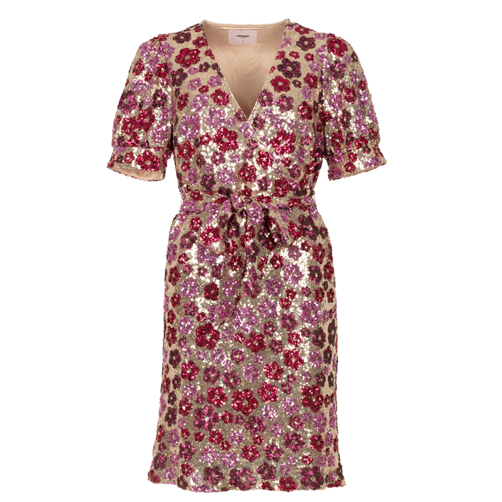 De Freebird Dieke Dress is een stijlvolle zomerjurk die je moeiteloos meeneemt van een zonnige dag op het terras naar een chique avondfeest. De jurk heeft een flatterende V-hals, korte mouwen en een strikceintuur in de taille die je figuur mooi accentueert. Dankzij de soepelvallende en luchtige stof zit de jurk heerlijk en beweegt hij elegant met je mee. De subtiele print en zachte kleuren geven de jurk een vrouwelijke en moderne uitstraling. Of je nu op zoek bent naar een elegante feestjurk of een luchtige outfit voor warme dagen – met de Dieke Dress van Freebird ben je altijd perfect gekleed. Het model is 170cm en draagt een 36.