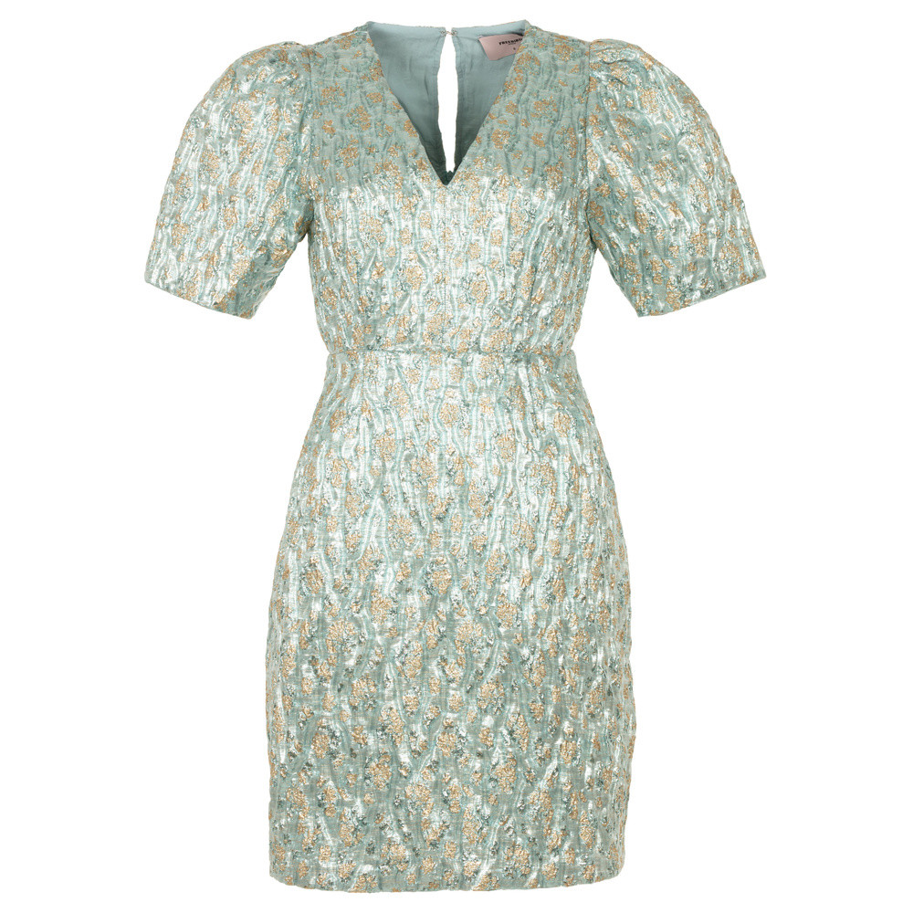 De Freebird Jurk Daantje in groen is een verfijnde keuze voor bruiloften, feesten of andere speciale gelegenheden. Deze elegante jurk heeft een vrouwelijke pasvorm met een V-hals en korte mouwen met subtiele schoudervullingen, wat zorgt voor een flatterende en chique uitstraling.