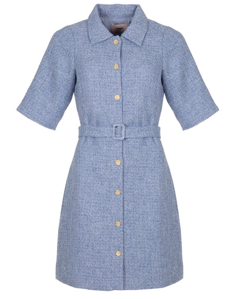 De Freebird Dress Dean Boucle is een elegante jurk met een verfijnde, tijdloze uitstraling die perfect past in een moderne garderobe. Deze Freebird jurk valt op door het unieke ontwerp en de zorgvuldige details die zorgen voor een stijlvol geheel. Het is een item dat moeiteloos klasse uitstraalt en geschikt is voor diverse gelegenheden, van een diner tot een feestelijke gelegenheid. Het model is voorzien van korte mouwen en een klassieke kraag, wat de jurk een chique en eigentijdse look geeft. Eén van de belangrijkste kenmerken van dit ontwerp is het bijpassende afneembare riempje. Hiermee kun je de taille naar eigen wens accentueren, waardoor je heel eenvoudig een vrouwelijk silhouet creëert.