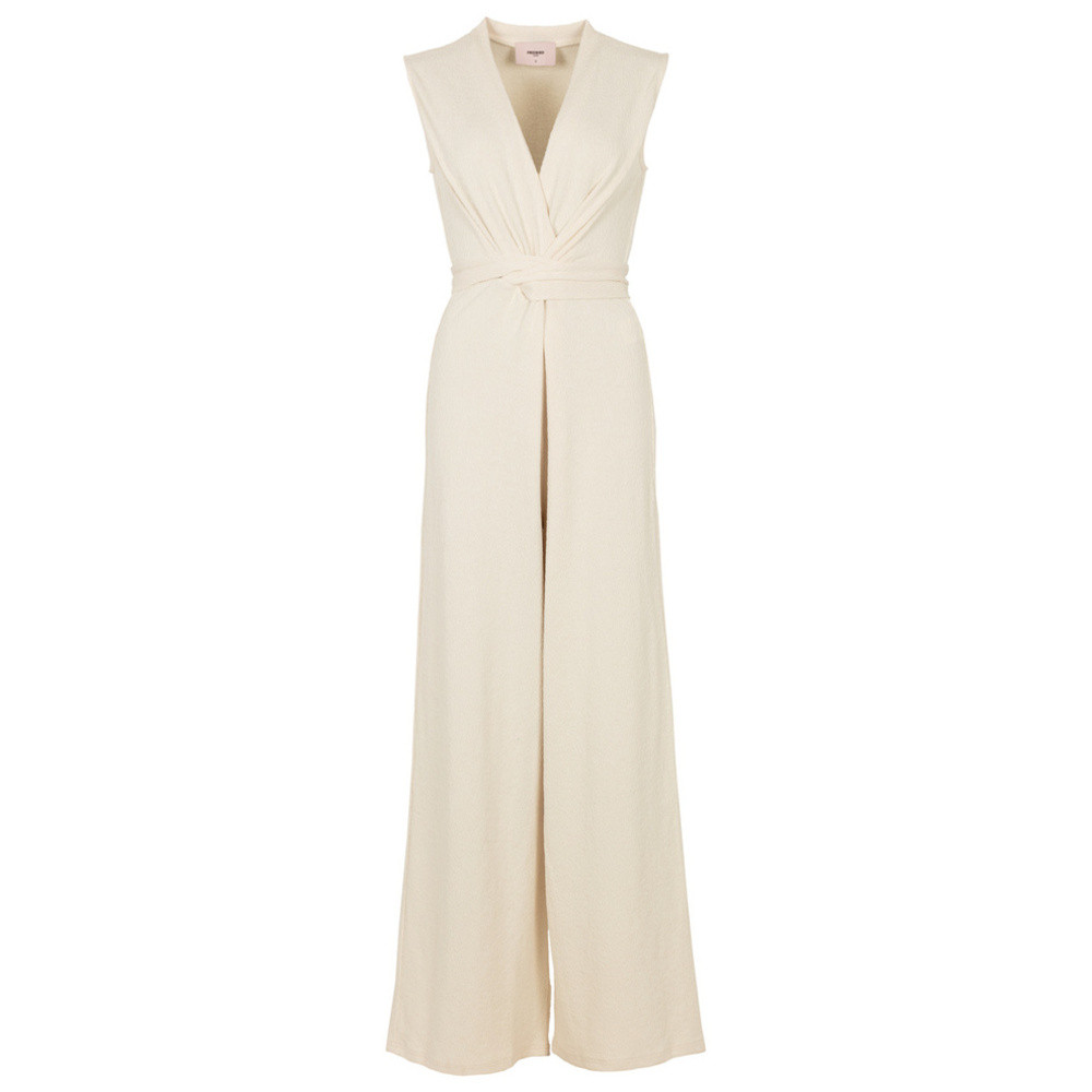 Dankzij de neutrale off-white kleur is deze jumpsuit eindeloos te combineren. Draag hem met hakken en sieraden voor een feestelijke look, of kies voor sandalen en een denim jacket voor een casual uitstraling. Ideaal voor een bruiloft, diner of zomerse dag! Het model is 171cm en draagt een 36. Deze jumpsuit heeft een ruime pasvorm. We adviseren een maatje kleiner te nemen!