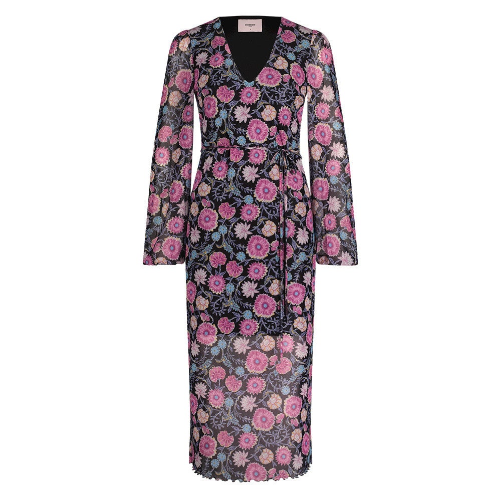 De Malia LS dress is een chique multicolor midi-jurk. De jurk heeft een V-hals. lange mouwen. een smalle riem en zijsplitten. Draag de geplooide jurk met pumps voor een chique look of met sneakers voor een sportieve look!