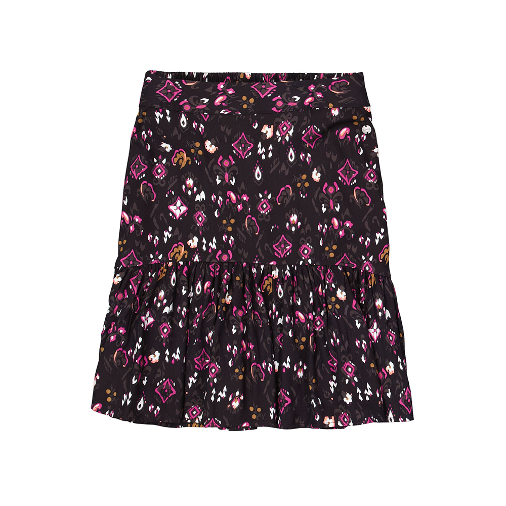 Rok met allover print en ruffles. Een echte eye-catcher!  De rok heeft een elastische tailleband en een regular fit. Dit item is gemaakt van 63% viscose, 32% polyamide en 5% elastaan.