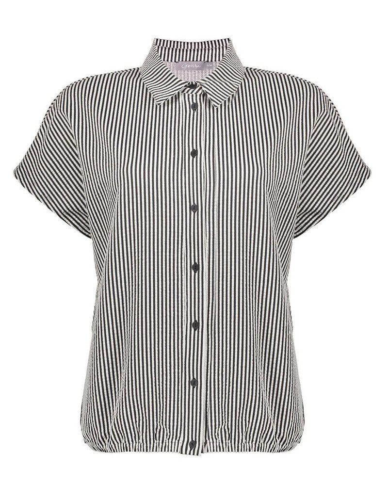 De Geisha blouse 63193 zwart is een stijlvolle en veelzijdige must-have voor jouw garderobe. Deze gestreepte dames blouse met korte mouw heeft een frisse, moderne uitstraling en is perfect voor zowel casual als geklede outfits. Dankzij de soepele stof en comfortabele pasvorm draag je deze blouse moeiteloos de hele dag, terwijl het tijdloze streeppatroon zorgt voor een elegante en vrouwelijke look. Deze Geisha blouse is ideaal te combineren met de bijpassende Geisha pants zwart 1, waardoor je eenvoudig een trendy co-ord set creëert. Deze combinatie geeft je outfit een stijlvolle en modieuze uitstraling, perfect voor warme dagen, vakanties of een dagje uit. Draag deze gestreepte blouse met korte mouwen met sneakers voor een casual outfit of combineer met sandalen of hakken voor een meer geklede stijl. Met deze korte mouw blouse kies je voor comfort, stijl en eindeloze combinatiemogelijkheden. Een echte essential voor elke modebewuste vrouw.
