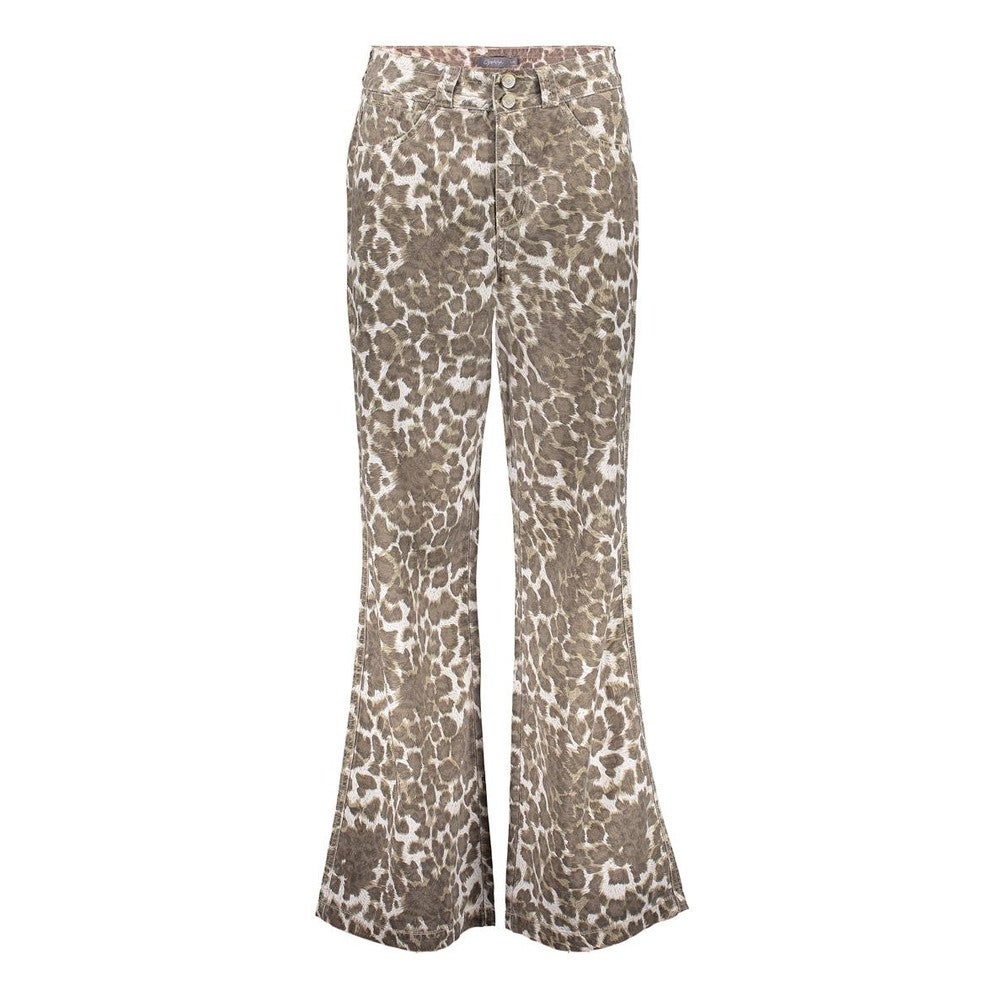 De Geisha Jeans Wide Leopard Bruin is een opvallende en stijlvolle toevoeging aan je garderobe. Met zijn brede pijpen en trendy luipaardprint biedt deze broek een perfecte mix van comfort en mode. Gemaakt van een hoogwaardige mix van 65% lyocell en 35% katoen, voelt de stof zacht aan en biedt het voldoende bewegingsvrijheid dankzij de lichte stretch. De hoge taille en rechte pasvorm flatteren diverse lichaamstypes, terwijl de subtiele zandkleurige tint veelzijdig te combineren is met zowel neutrale als felle kleuren. Of je nu kiest voor een casual look met sneakers en een basic top of een chique uitstraling met hakken en een blouse, deze jeans past zich moeiteloos aan jouw stijl aan.