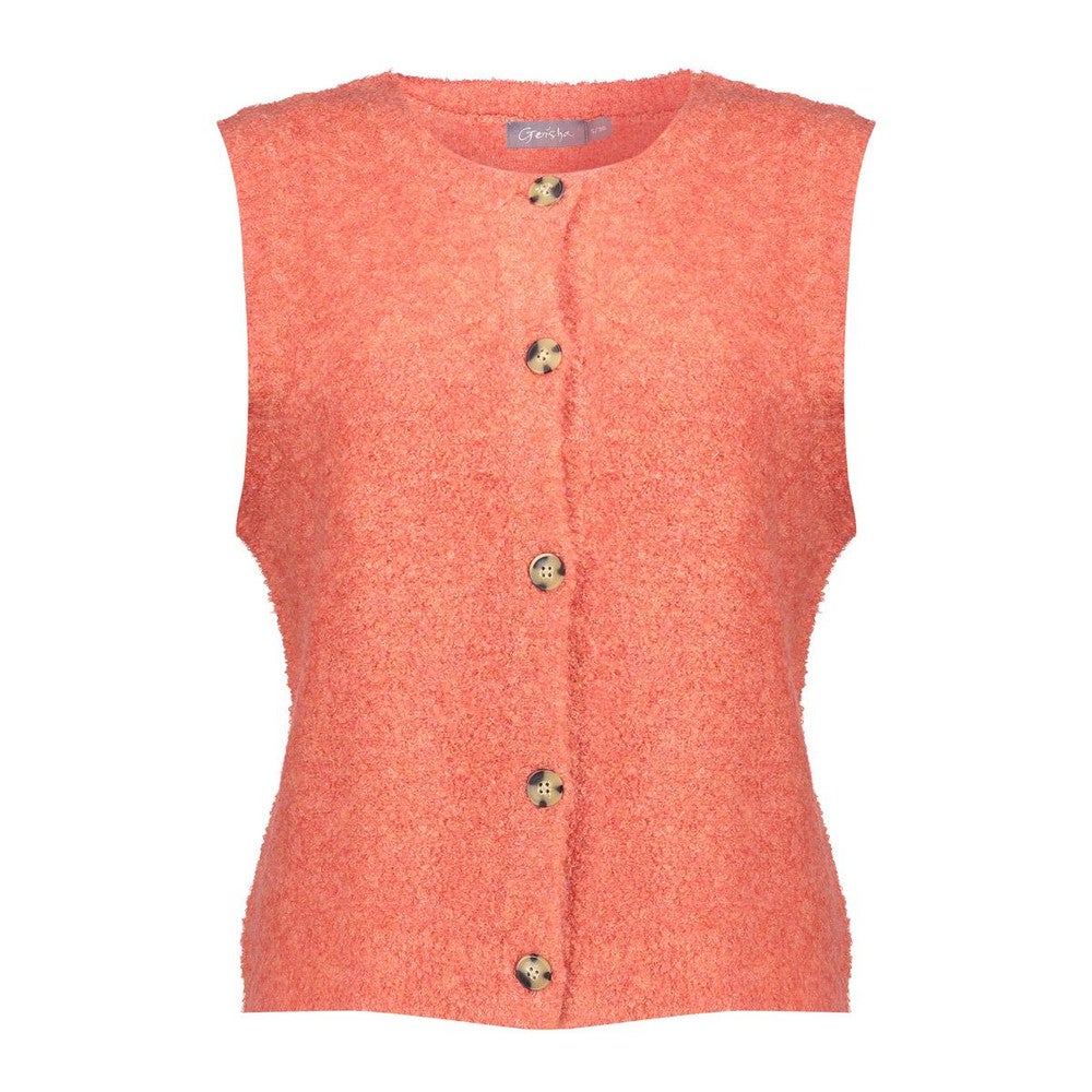 De Geisha Spencer Boucle is een stijlvol en veelzijdig mouwloos gilet met een warme uitstraling. Gemaakt van een prachtige bouclé-structuur, heeft deze Geisha spencer een luxe en zachte feel. De opvallende, maar smaakvolle knopen dragen bij aan de karakteristieke look en geven het geheel een klassieke, chique afwerking. Dankzij de heldere oranje kleur springt het gilet er ook nog eens uit, waarmee je je look direct extra warmte en energie geeft. Draag deze Geisha Spencer Boucle Oranje over een blouse of coltrui om je outfit een modieuze en textuurrijke twist te geven.