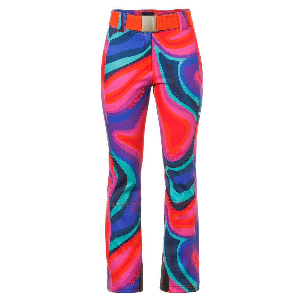 De Goldbergh Fairy skibroek biedt zowel stijl als functionaliteit met een allover print die elk kledingstuk uniek maakt. De broek heeft twee beenritsen voor extra ventilatie, twee elastische riemen voor een betere pasvorm, en sneeuwvangers aan de zoom om je droog te houden op de piste.